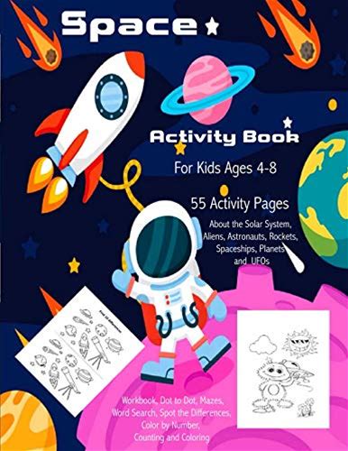 Space Activity Book For Kids Ages 4-8: 55 Activity Pages About The Solar System, Aliens, Astronauts, Rockets, Spaceships, Planets And Ufos: Workbook,