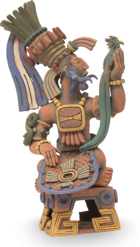 Hand-Painted Folk Art Aztec God Ceramic Sculpture