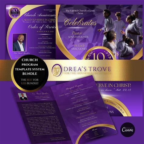 Purple Gold Church Program Template | Anniversary, Pastoral (Canva)