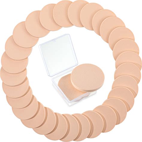 Patelai 100 Pieces Round Makeup Sponges Cosmetic Sponge Round Primer Compact Powder Puff With Transparent Case Makeup Powder Puffs Applicator Make Up