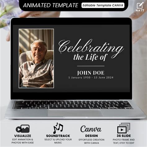 Funeral Slideshow Presentation Template With Music Photo Collage Slide Show Digital Video Movie Album Book Canva Text Image Song Editable