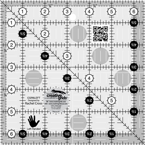 Creative Grids Left Handed Quilt Ruler 6-1/2in Square