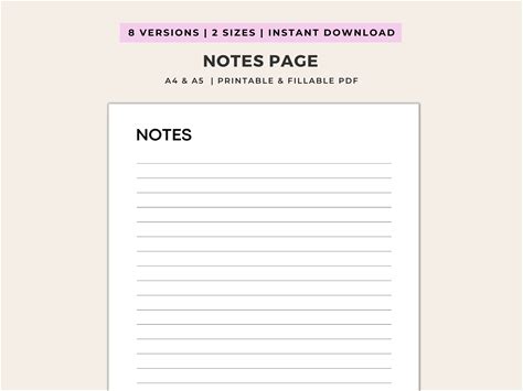 Notes Pages Printable, Writing Paper, Blank Notes, Study Note Template, Lecture Notes, A4/A5/Letter/Half Size, Instant Download PDF