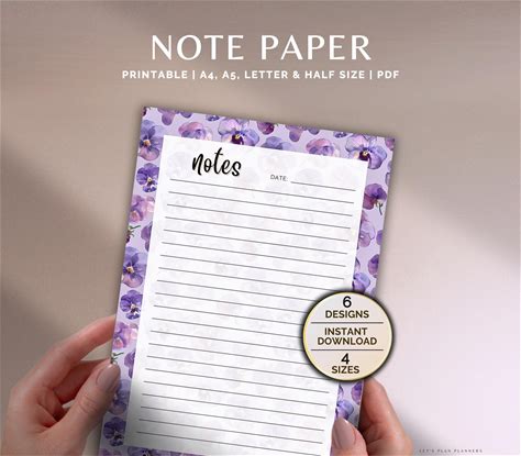 Note Paper Printable Template Note Page Lined Blank Dot Grid Todolist Planner Notes Insert Size A4/A5/Letter Half Instant Download