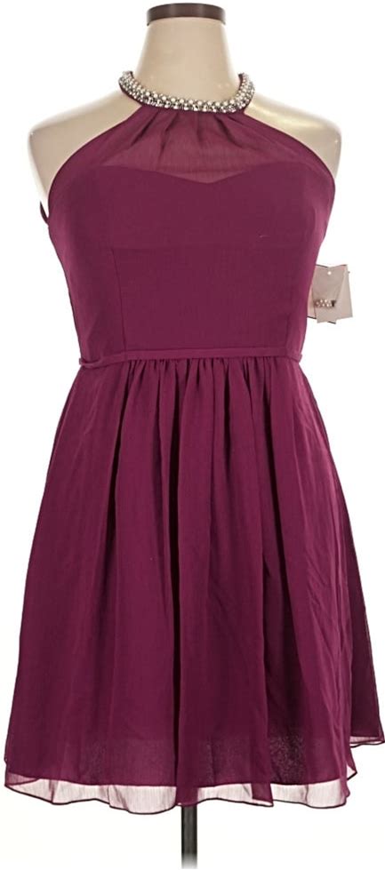 David's Bridal Cocktail Dress - A-Line Halter Neckline Sleeveless: Burgundy Solid Pattern Dresses - Women's Size 14
