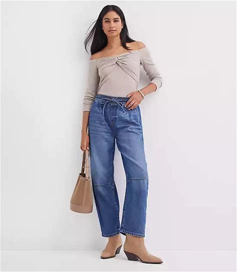 Loft Pull On High Rise Barrel Jeans In Vintage Light Indigo Wash Size 32 Women's