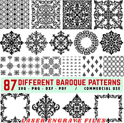 Laser Engrave Files Different Baroque Pattern Svg & Png Bundle For Glowforge Cut Files, Xtool Engraving Art, CNC Laser Template Wood Engrave