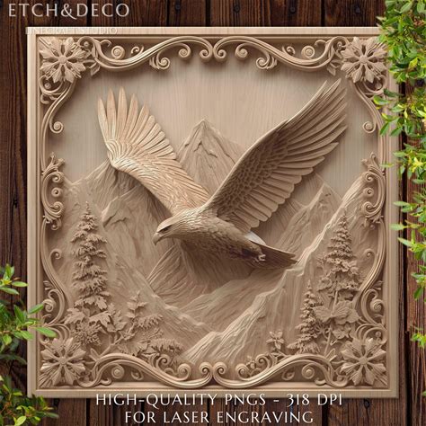 3D Illusion Eagle With Mountain PNG File For Wood Laser Engraving, Cnc Design For Glowforge Xtool Lightburn, Laser Burn Png, Cnc Router File