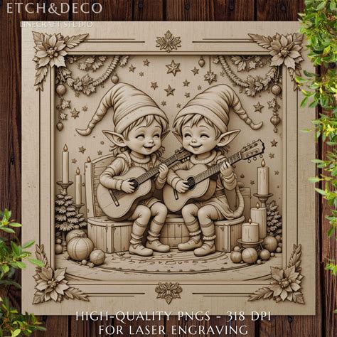 3D Illusion Christmas Elves PNG, File For Wood Laser Engraving, Cnc Design For Glowforge Xtool Lightburn, Laser Burn Png, Cnc Router File