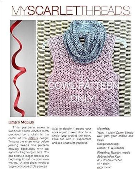 Mobius Cowl Pattern, Infinity Scarf Pattern INSTANT DOWNLOAD