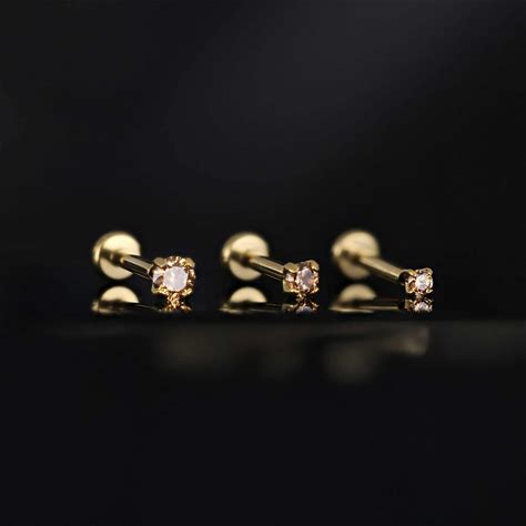 18G 20G 16G Tiny Cz Threadless Push In Labret Push Back Tragus Stud Gold Silver Minimalist Cartilage Earring Conch Stud Sensitive Skin