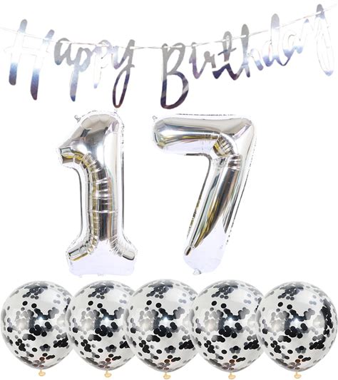 Chaungfu 17th Birthday Decoration Happy Birthday Banner Balloons 17 Years Old Birthday Supplies Helium Balloons Number 17 Balloons Latex Balloon Foil