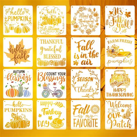 16Pcs Fall Stencils For Painting On Wood, Halloween Stencils 6" Pumpkin Stencil Templates Autumn Leaf Thanksgiving Stencils Reusable For Crafts Card Making Wood Wall Furniture Painting Gifts For Kids