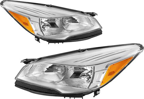 JSBOYAT Headlight Assembly Replacement For 2013-2016 Ford Escape Headlamp Driver & Passenger Side (Chrome Housing With Amber Reflector) Not For