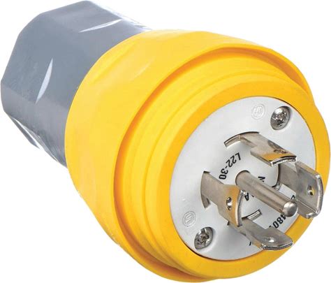 Hubbell Watertight Locking Plug: L22-30P, 30 A, 277/480V AC, Yellow, 4 Poles Model: HBL28W82