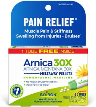 Boiron Arnica Montana 30X, Homeopathic Medicine For Muscle Pain, Stiffness, Swelling From Injuries, Bruises, 3 Count (3 X 80 Pellets)