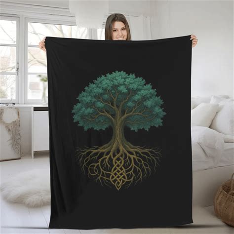 Ancient Yggdrasil Tree Of Life Fleece Blanket - Celtic Forest Design, Soft Black Throw For Home Décor, 30" X 40"
