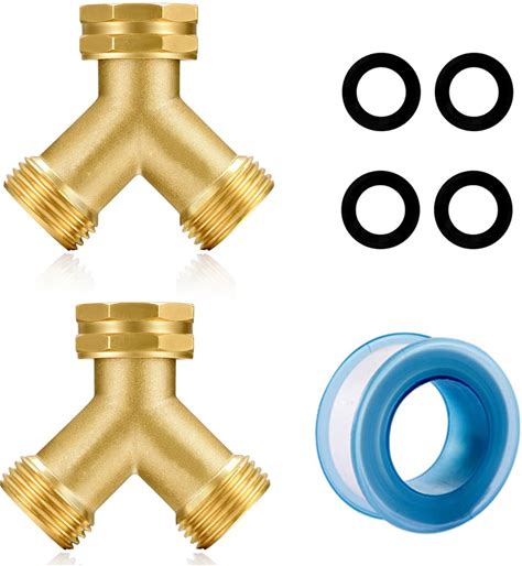 Brass Garden Hose Splitter 2-Way Heavy Duty - 3/4" GHT Threads With 2×304 Stainless Steel Handles, High Flow Design For Efficient Water Distribution