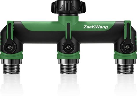 Full Flow Heavy Duty 3 Way Hose Splitter, Rugged Garden Faucet Adapter, Spout Diverter T - Way Adapter With Extended Handle, 3/4" GHT Thread, Green