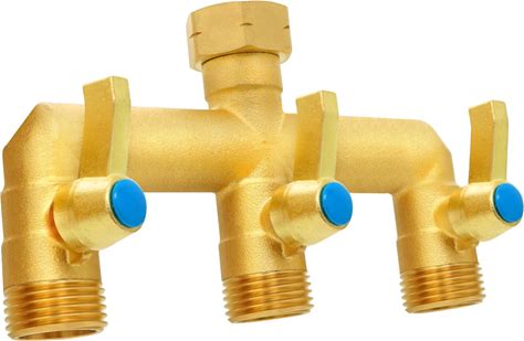 3-Way Full Flow Garden Hose Splitter, 3/4" GHT Thread, Heavy Duty Brass Nickel Plated Outdoor Faucet Manifold Hose High Flow Adapterwith Individual