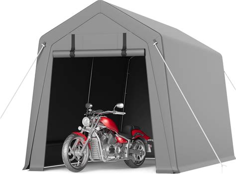 Motorcycle Storage Sheds 7X15 FT, Portable Shed With Rolled Up Zipper Door, Waterproof, Storage Tent Heavy Duty, Grey