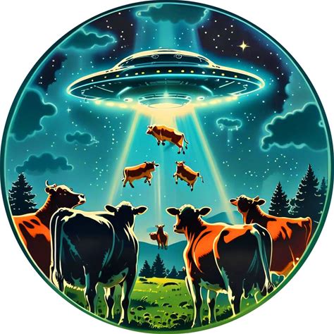 2025 Intaglio Alien Invasion Cow Abduction Colorized 1 Oz Silver Art Round. Bars & Rounds.