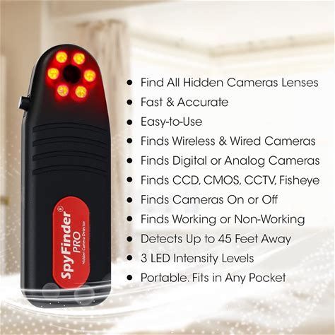 SPYFINDER PRO Hidden Spy Camera Detector - Hidden Camera Tracking Scanner Hidden Devices Detector - Anti Spy Detector Portable - Personal Video Cam Tracker - Detect Covert Video Camera
