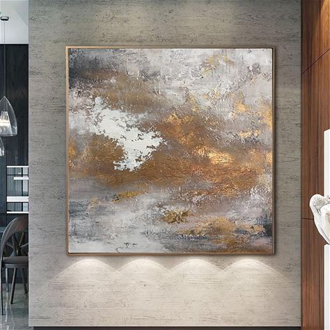 Gold Leaf Canvas Wall Art,Large Beige Gray And Gold Foil Abstract Painting Gold And Grey Canvas Art Gray Texture Acrylic Art Living Room Art