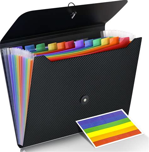 POUYRBA Expanding File Folder, 2Pcs 13 Pockets A4 Size Rainbow Plastic Accordion File Organizer File Storage Folder With Multiple Pockets For