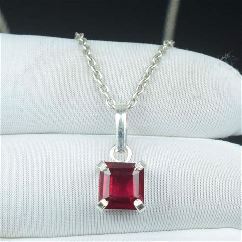 Beautiful Square Cut Loose Gemstone Jewelry | Boho Accessories Necklace | Real Red Ruby Pendant | Vintage 925 Sterling Silver Necklace |