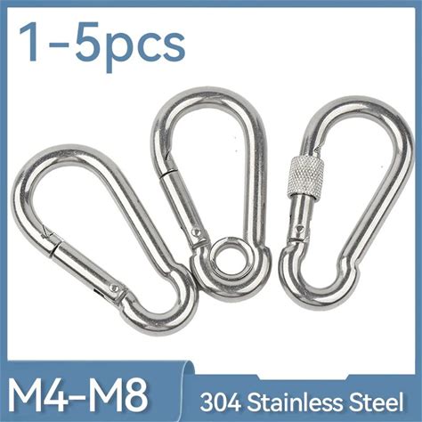 1/2PCS M4 M5 M6 M8 304 Stainless Steel Spring Snap Carabiner Multi-Purpose Quick Link Lock Ring Hook