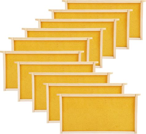 Bee Frames, Deep Beehive Frames With Wax Foundation, 10Pcs Hive Frames, 9-1/8-Inch, Unassembled