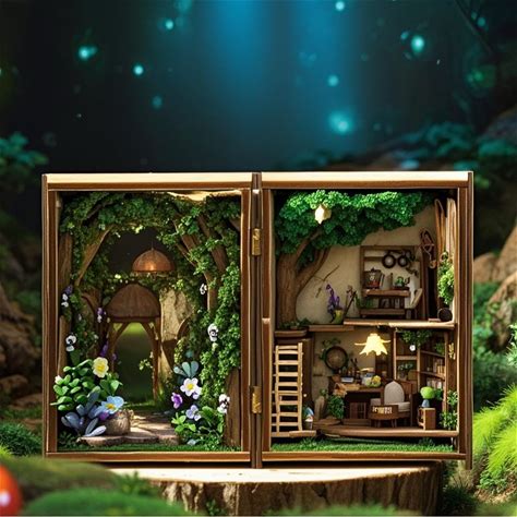 Iiecrkiie Book Nook Kit DIY Miniature House With LED Light Booknook Bookshelf Insert Decor Wooden Bookend Craft Hobby Diorama Kit Unique Gifts