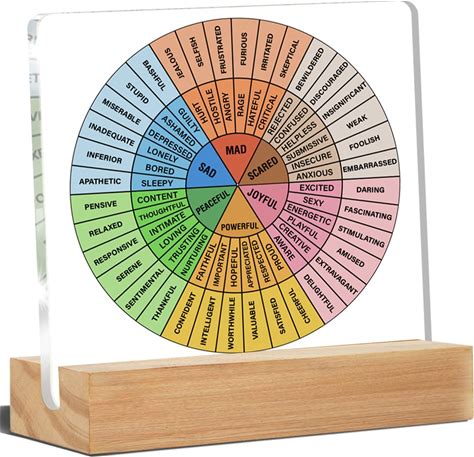 Feelings Wheel Therapy Office Desk Decor Emotions Chart Mental Health Display Plat With Stand For Calming Corner School Counseling Classroom Home