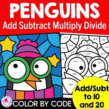 Winter Penguins Color By Number Code Addition Subtraction Multiplication Divide