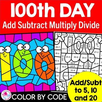 100TH DAY OF SCHOOL Color By Number Code Addition Subtraction Multiplication