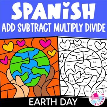Spanish SPACE Color By Number Code Addition Subtract Multiplication FALL SPRING