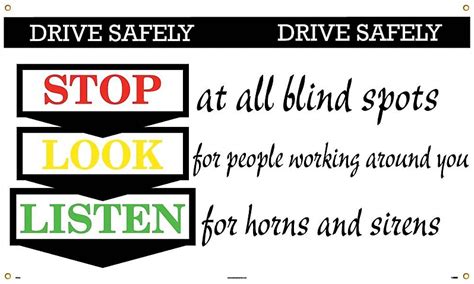 Accuformnmc Drive Safely - Stop At All Blind Spots, Look For People Working Around You, Listen For Horns And Sirens, 60 in L X 36 in H, Safety Banner