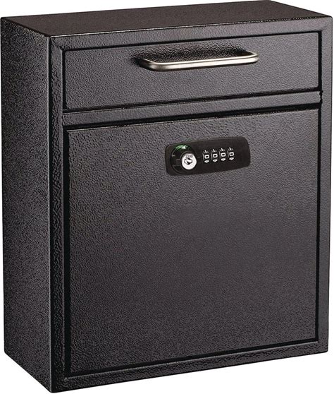 Adiroffice Medium Secure Drop Box Wall Mounted Locking Mail Box With Key And Combination Lock, 10.51 X 4.72 X 12, Black (ALHI63105BLKKC)