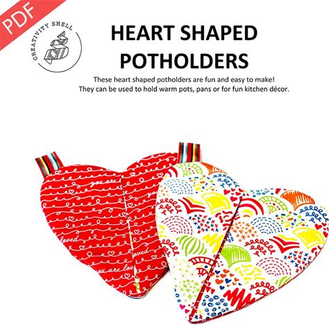 Heart Shaped Potholders Downloadable PDF Sewing Pattern | Creativity Shell