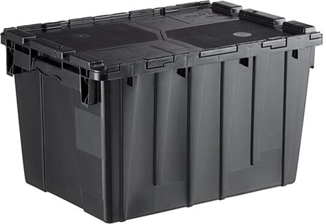 Lavex 21 13/16" X 15 3/16" X 12 7/8" Black Plastic Flip-Lid Shipping / Storage Tote