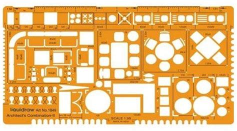 Liquidraw 1:50 Scale Architectural Scale Ruler Drawing Template Stencil Architect Technical Drafting Supplies, Architecture Furniture Design Symbols
