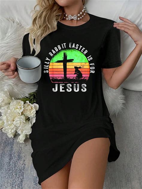 Silly Rabbit Easter Is For Jesus Christian Religious T-Shirt Dress Women's Dress, Casual Summer Dress,S