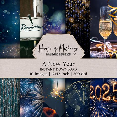 A New Year Digital Paper Kit 12X12 Inch,10 Digital INSTANT DOWNLOAD Hi-Res JPEG Backgrounds For Junk Journal, Scrapbooking & Printable Craft