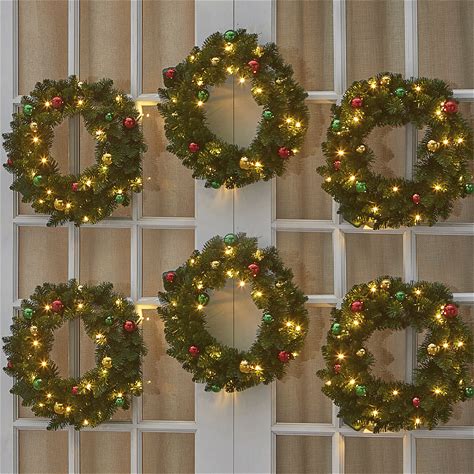 18" Pre-Lit Arrow-Tip Wreaths, Set Of 6 By Brylanehome In Ornaments