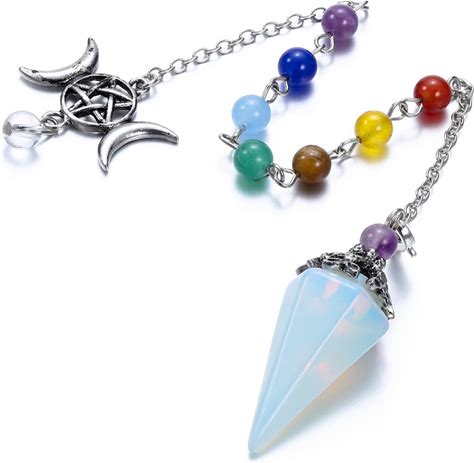 TUMBEELLUWA Healing Crystal Quartz 7 Chakra Pendulum Dowsing Gemstone Divination Reiki Stone