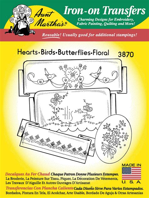 Hearts, Birds, Butterfly, & Floral Aunt Martha's Embroidery Transfer Designs 3870