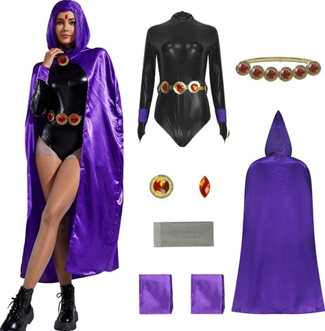 Cartoon Anime Teen Titans Raven Cosplay Costumes Sexy Women Jumpsuits Cloak Belt Set Halloween Party