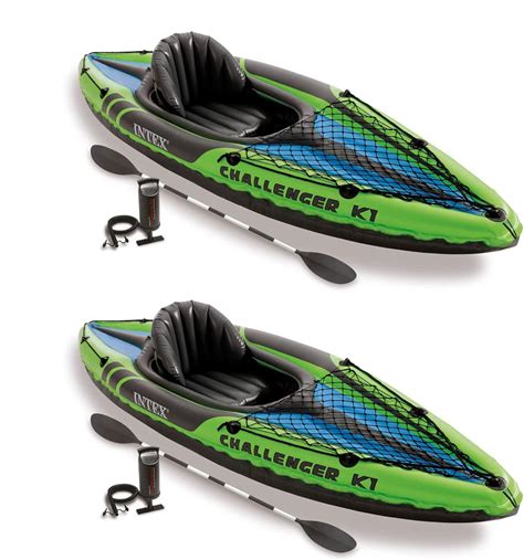 Intex Challenger K1 1 Person Durable Vinyl Streamline Sporty Kayak With Inflatable Seat And Backrest, Oar, Pump, Carrying Bag, And Repair Kit (2 Pack)