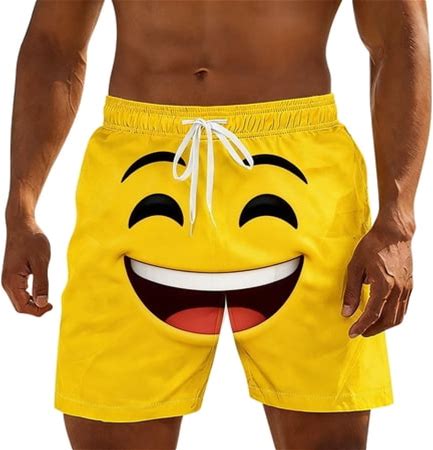 Brnmxoke Mens Dissolving Swim Trunks Funny Print Quick Dry Beachwear Shorts Summer Sports Drawstring Elastic Waist Holiday Party Pant Yellow,S